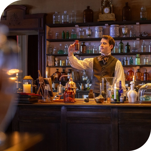 L’antica farmacia di Henry Roberts era un luogo di cura, studio, sperimentazione e incontro, avvolgente nei suoi profumi e colori. È un caos organizzato, uno spazio vivo che riflette l’anima di Henry Roberts. Offriva una vasta gamma di prodotti e soluzioni su misura, creati con attenzione alle materie prime e alle esigenze di cura, bellezza e piacere di ogni individuo. Era, nella sua essenza, un luogo di restituzione, di conoscenza, tradizione e rispetto per le persone e il territorio. È qui che il sapere si trasforma in profumi unici e in gesti di attenzione, rendendo la farmacia un vero e proprio laboratorio di sapere.